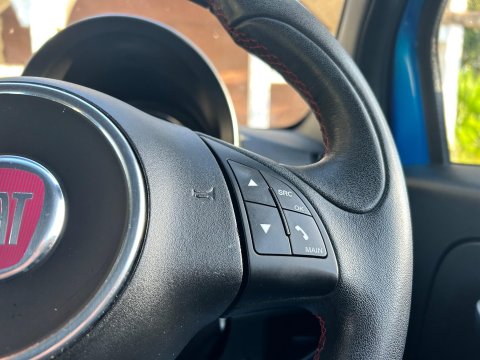 Looks abs Fabulous in this colour. Fiat “Electronica Blue Metallic. Specification includes Fiat 500 Embossed Carbon Black/Blue half leather sports seats in unmarked condition. Colour coded electronica door panels. “Colour coded aerodynamic exterior styling. Heat reflecting tinted glass. Colour coded anthracite headlining. Retro 500 V-Spoke Quartz grey alloy wheels. Leather/Carbon multi function steering wheel. Air conditioning. Fiat “Blue & Me multi function infotainment system with voice command. Satin steel grey interior styling pack etc etc. Only £35 per year road tax. Complete with all spare keys, fitted over carpets and has never been smoked in. Viewing is a must. Great value with this specification and for a stunning low mileage vehicle.
